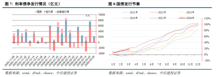 本周同行存单净刊行-2241.70亿元,其中国有行、股份行、城商行净刊行分辨为-1370.40、203.10、-726.40亿元;平均刊行利率为1.53%,其中国有行、股份行、城商行平均刊行利率分辨为1.48%、1.54%、1.56%。本周利率债净刊行2059.47亿元,其中国债、场地政府债、战术性银行债净刊行分辨为948.10、1305.97、-194.60亿元。