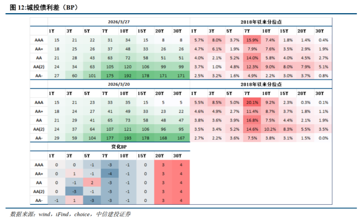 1Y、3Y、5Y、7Y、10YAAA中短票利差分辨为14BP、19BP、21BP、29BP、31BP,开云体育较上周变化0BP、0BP、-2BP、-1BP、-3BP。