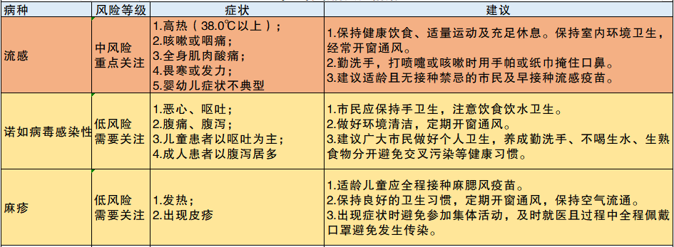 常见传染病风险指令