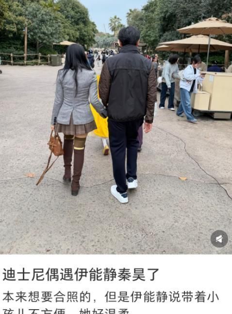 3月29日今日,多位眼见者证实,在上海迪士尼园区内清楚捕捉到伊能静与秦昊并肩而行的身影。