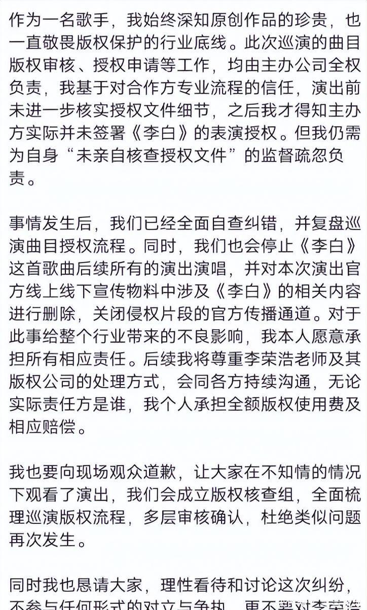 李荣浩自后也透了底,说我方和家东说念主遭了网暴,维权根底不是为了钱,等于不念念授权。这就很显着了,好言好语婉拒过,开云体育(kaiyun)官方网站对方非要硬唱,那也别怪前辈龙套不认东说念主。说真话,我也挺佩服李荣浩能忍到当今。当初那版改编出来的时刻,满屏王人在夸开云体育(kaiyun)官方网站,我是极少没听懂好在哪。“今晚来打野”、“试试又能怎”,这种词也能叫艺术?听着只以为摇荡又逆耳,裕如是在铺张原曲的田地。