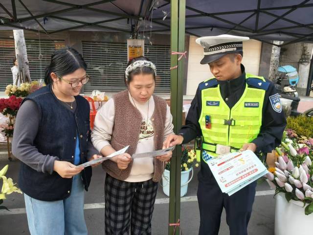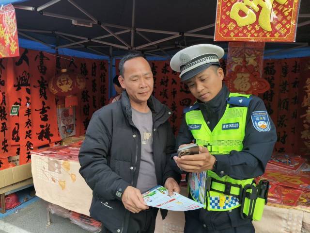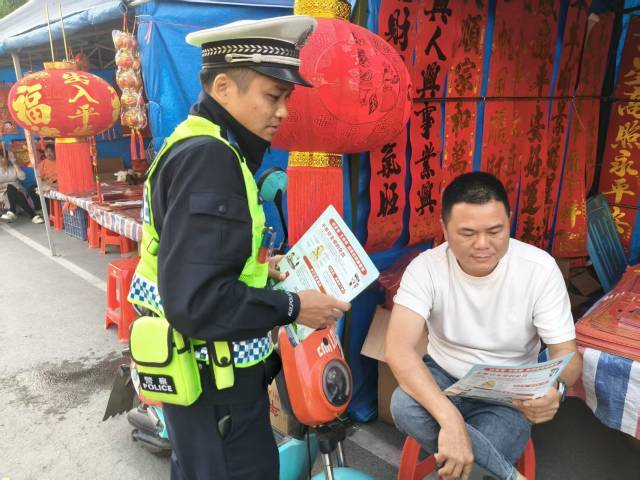 同期向过往市民、购物寰宇披发宣传良友,聚合春节出行特色,要点教导电摩安全出行、春启动车精明事项、娴雅泊车、拒却酒醉驾等本色,教唆巨匠自愿盲从交通律例,吉利出行、娴雅礼让。