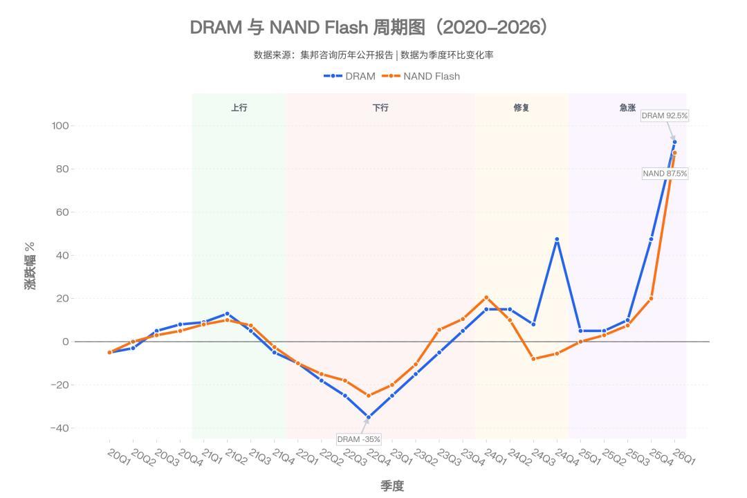 到2023年,供给如故大于需求,价钱赓续承压。到了2024年,减产成果驱动裸露,价钱再行回升。再到2025年下半年和2026年,东谈主工智能需求把市集又推到了另一个极点。
